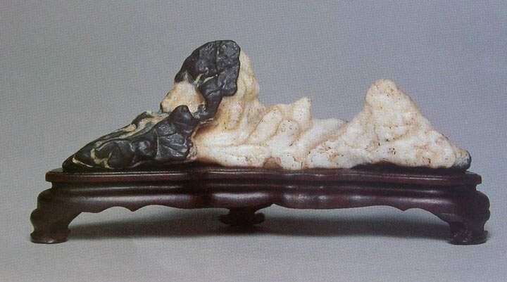 Di tutte le famose pietre dell’antichità poche sono rinomate come i “Picchi Gemelli “ , che Bai Juyi annoverava fra i suoi migliori amici , “Il Monte Jihua in un vaso “ appartenente a Su Shi e il “Baojin Studio Mountain Inkstone “ appartenuto a MI FU che poi fu venduto ad un amico . Altre pietre furono sotterrate coi proprietari e le guerre ed i disastri naturali ne fecero sparire molte altre . E’ necessario notare che “antico” non si riferisce all’età geologica ma esclusivamente all’età in cui furono raccolte ed esposte . Pertanto le pietre devono essere ammirate per le loro qualità fisiche e spirituali e non per l’età geologica a cui appartengono tutte